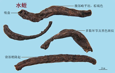 ④治漏下去血不止:水蛭治下筛,酒服3克,日二,恶血消即愈。(《千金要方》)
